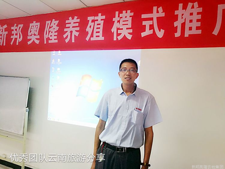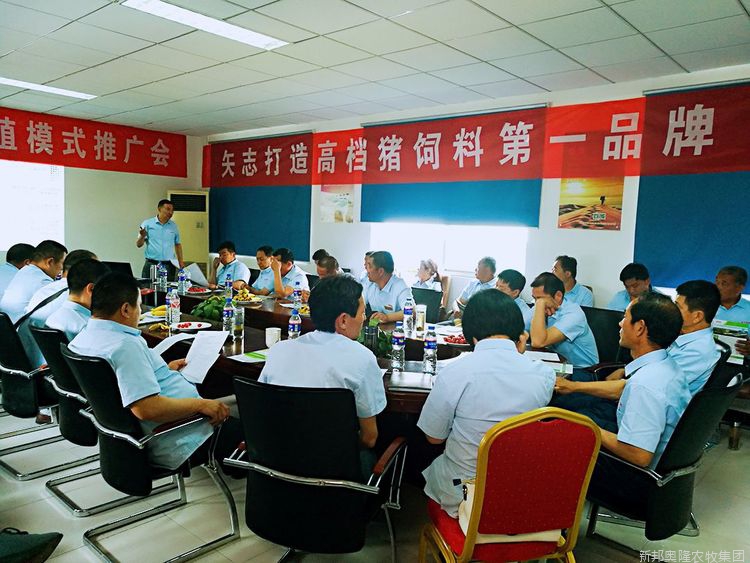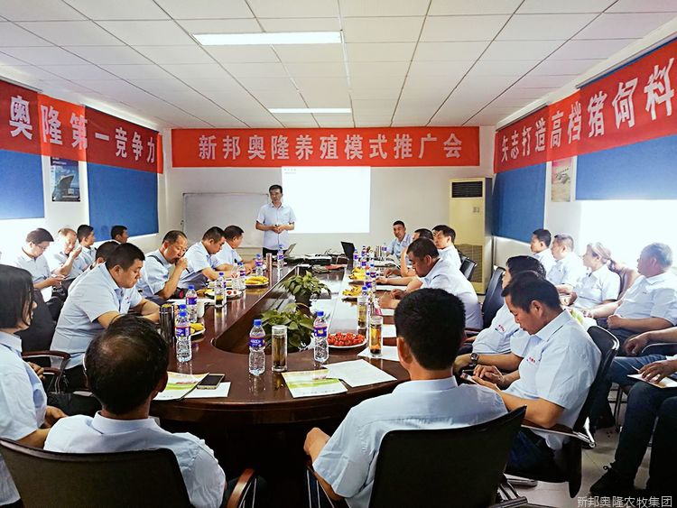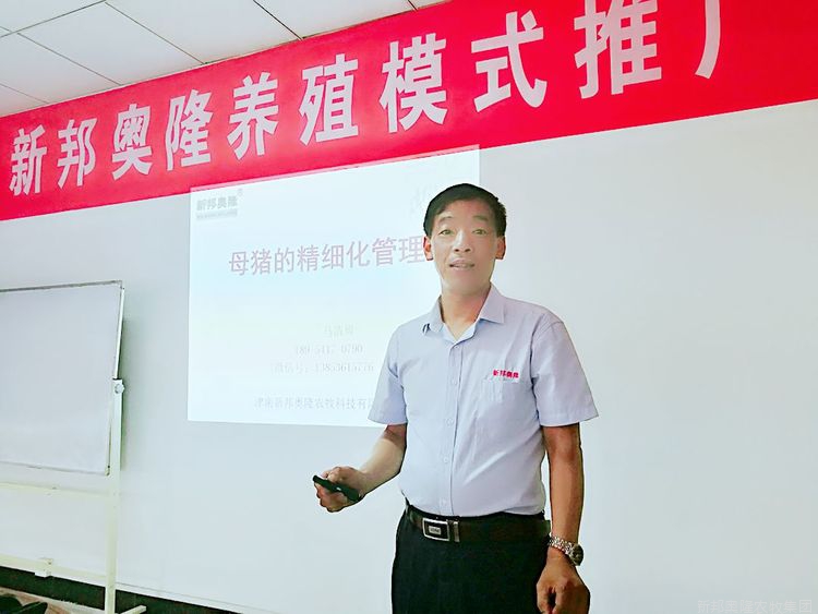 技术总监马清周结合新邦奥隆标准化养殖模式为与会人员分享了《新邦奥隆产品设计理念》《新邦奥隆品质控制体系》和《产品套餐应用与养殖效益分析》。